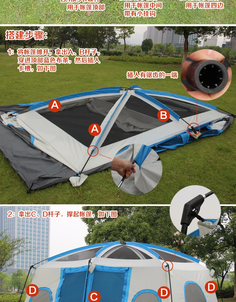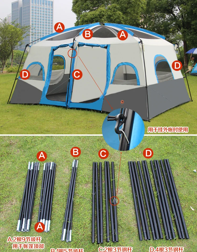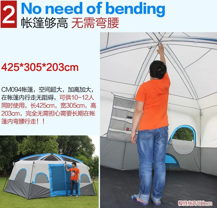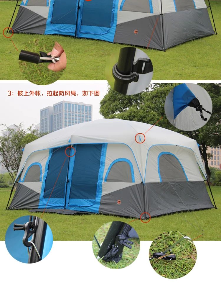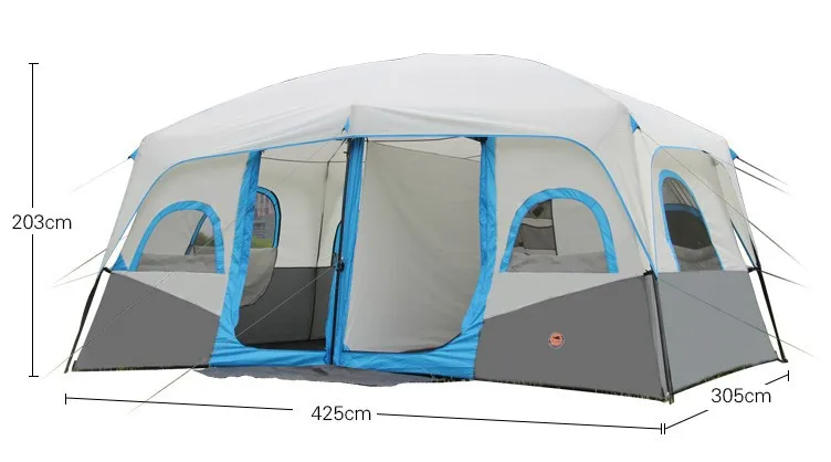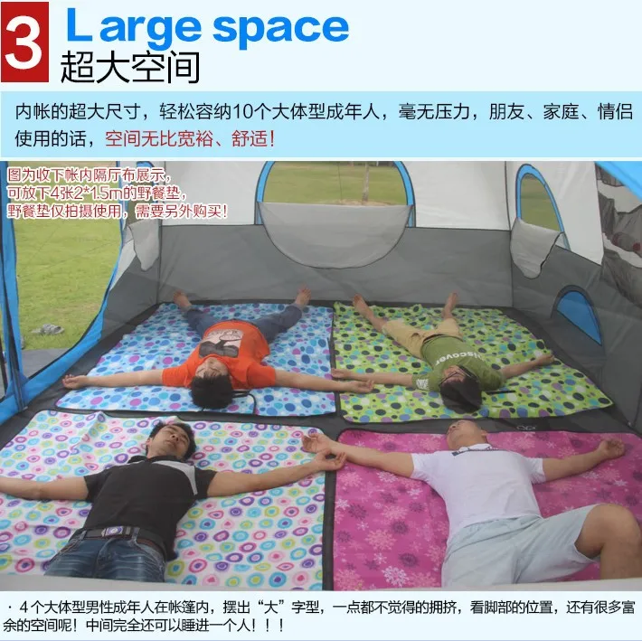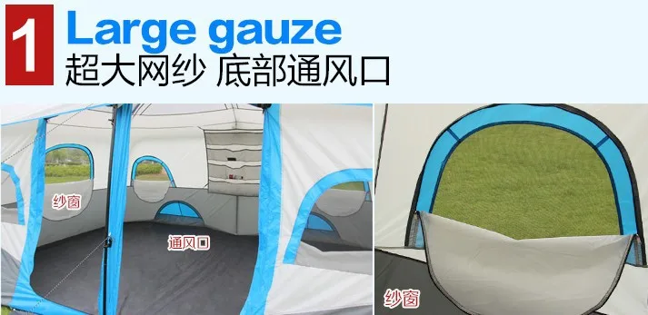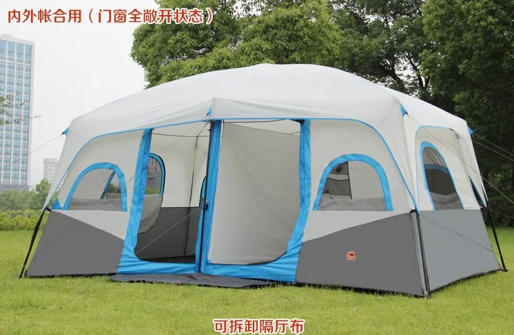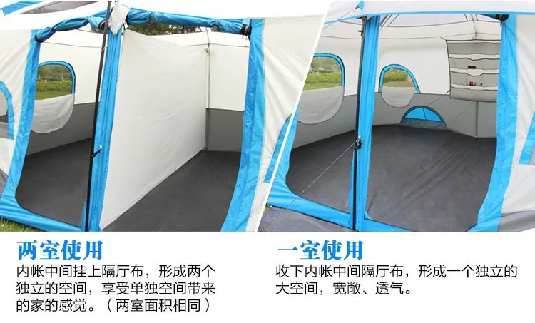 New pattern outdoor 10-12 persons beach camping tent anti/proof rain UV/waterproof 2rooms large camping tent